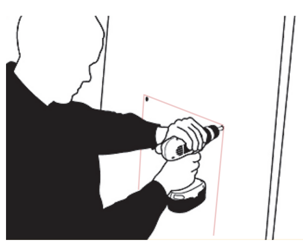 - Once you are certain the pet door will work with your door, make sure the template is level, and mark the outline with a pencil. Remove the template and drill holes through the corners just inside of the lines using a ⅜” (9,5 mm) drill bit.