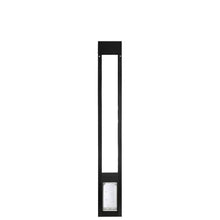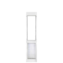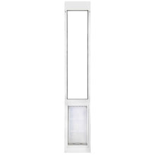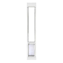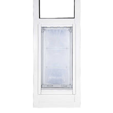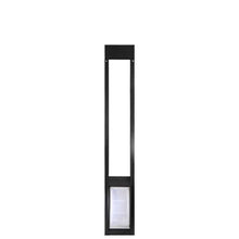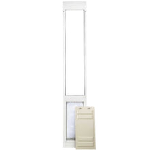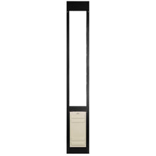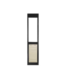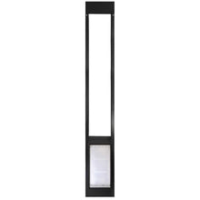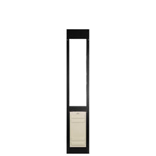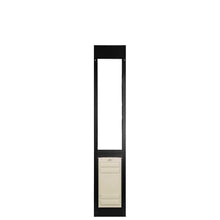 - Aluminum frame pet door designed for sliding glass doors with a minimum track thickness of once inch