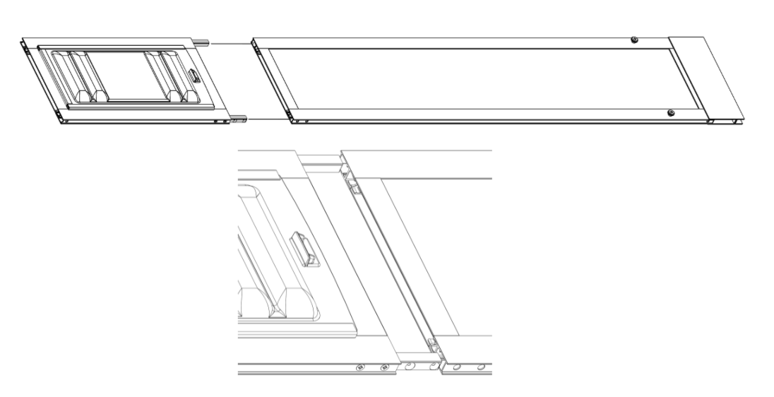 - Align the aluminum connectors extending from the bottom flap panel section with the top glass panel section.