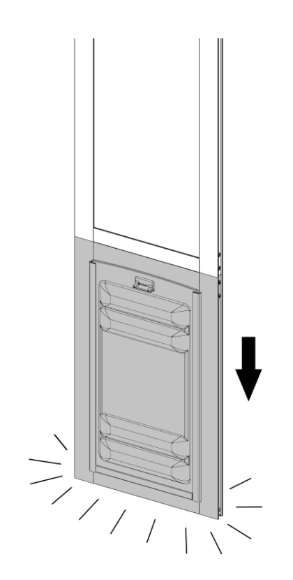 - Replace the spacers and the Pet Door Assembly by sliding them back in a different order to achieve the desired height. You can move the spacer below and above the flap to raise or lower the flap height.
