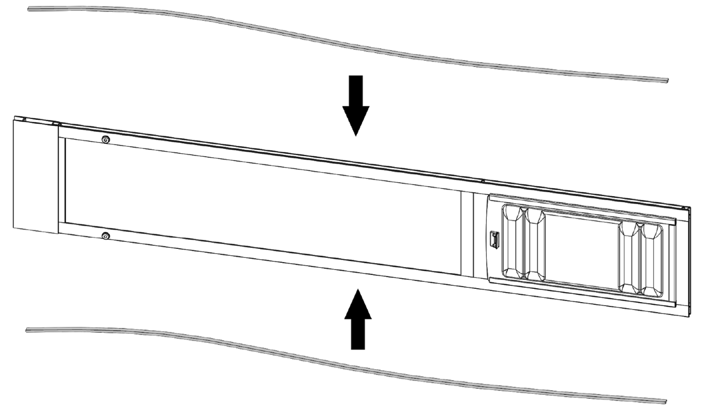 • Press the aluminum connectors into the holes at the bottom of the top glass panel section.