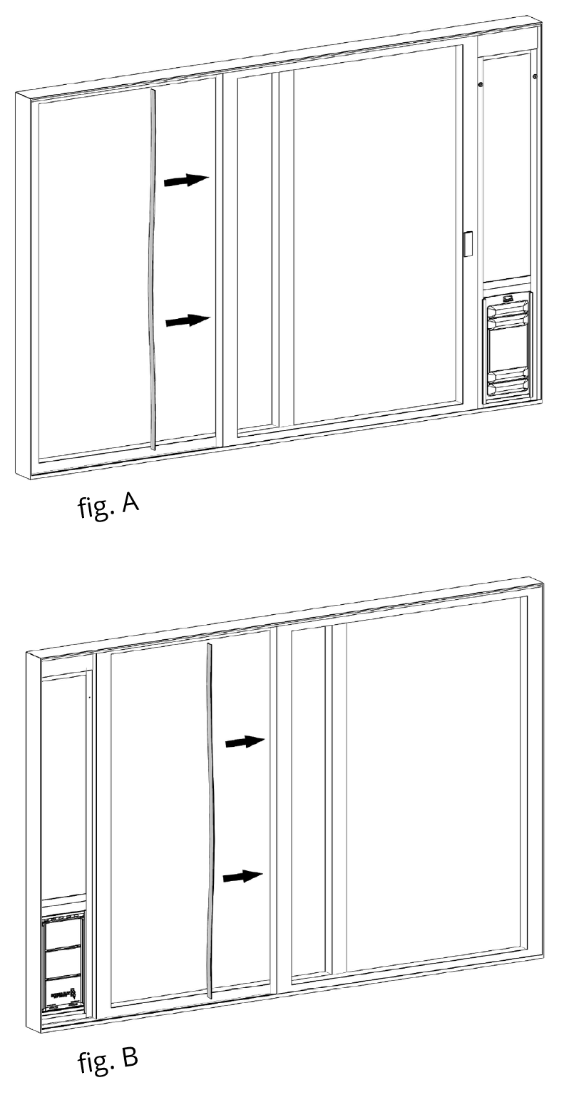 Anderson and Pella sliding glass doors have an inner track wall but no outer track wall. Additionally, the pencil rail is on the outer edge of the track rather than in the middle. Since this pet door panel is designed to sit between two track walls and on top of a centered pencil rail, it cannot be installed in Anderson or Pella doors without modifications. We recommend building out your track and using L brackets or toenailing to secure the bottom of the panel to the inner track wall. Building out the track means adding a piece of wood or vinyl that is the same height as the pencil rail to the space next to the pencil rail. This creates a flat surface for the pet door panel to sit on. Next, you will need to secure the panel to the track wall. To do this, you can use L brackets or you can toenail the panel into the track wall. Toenailing is the process of fastening the panel to the track by driving a nail at roughly a 45-degree angle into the panel and through the track wall. Please note that these modifications result in a semi-permanent installation. If you needed to remove the panel in the future you would first have to remove the L brackets or nails. Additionally, please note that this process would leave holes in the pet door panel and it would no longer be returnable. Please reach out to customer service to further discuss this process or different options for an Anderson or Pella sliding door.