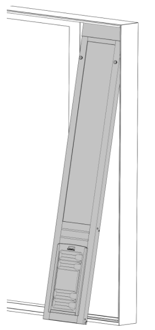 • Insert the panel into the upper track of your door frame, push the panel into the spring mechanism, then swing the bottom of the panel up and over the threshold into the lower track rail.