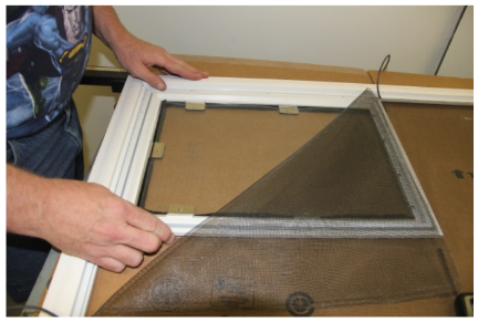 - Lay the screen window or screen door on a flat surface with the screen spline facing upward.