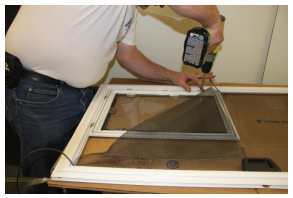 - Determine which corner of the screen door is to be used for installing the pet door.