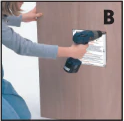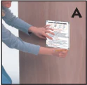 - With the template in place (A), draw around the edge of the template onto the door. Mark the corner holes with a nail or awl.