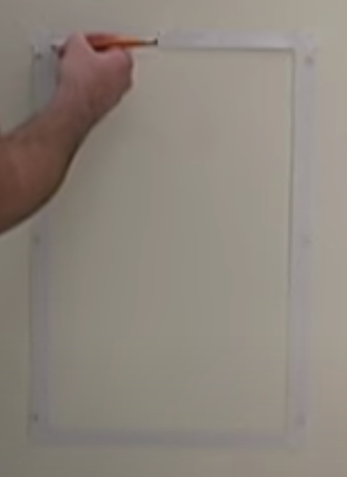 - With the template taped in place, use a pencil to draw around the inside edge of the template onto the door.